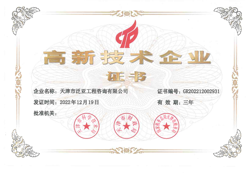 近日,天咨公司下屬泛亞公司順利通過國家高新技術企業認定,被天津市科學技術局、天津市財政局、國家稅務總局天津市稅務局授予《高新技術企業證書》,正式獲批國家高新技術企業。