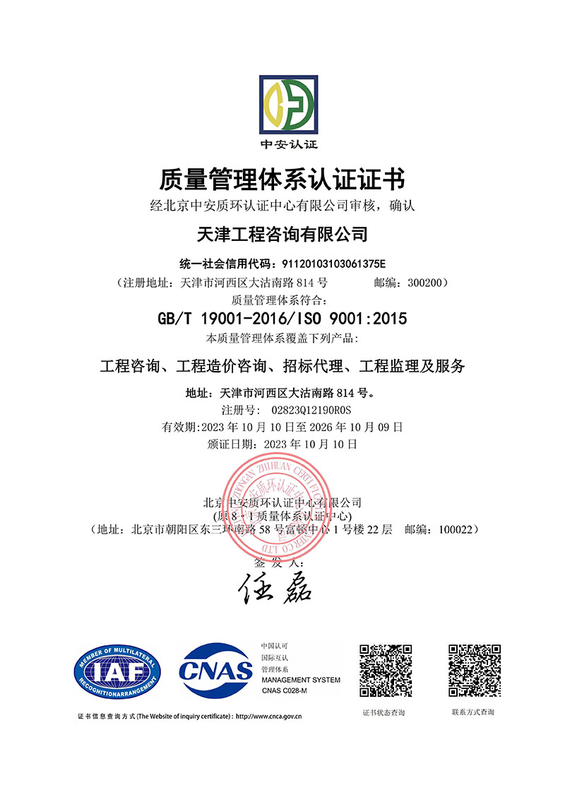 同時,為進一步規范公司內部管理,保障服務質量,向管理要效益,天津咨詢啟動了ISO三大管理體系認證工作。本次通過ISO三大管理體系認證審核,對于公司完善管理體系,推動質量、環境、職業健康安全管理體系持續有效運行,進一步提高管理水平具有重要意義,不僅有助于增強企業競爭力,而且樹立了優良企業形象。