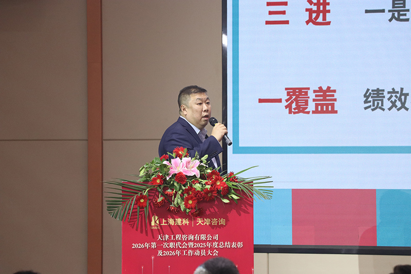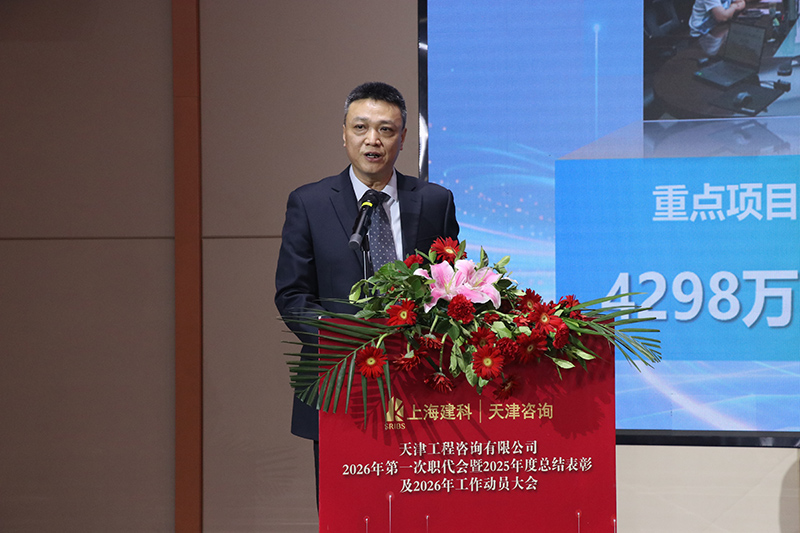 上海建科咨詢集團(tuán)黨委委員、副總裁何錫興對(duì)天津咨詢2025年取得的成績(jī)表示祝賀,代表集團(tuán)黨委向天津咨詢?nèi)w干部職工2025年付出的辛苦努力表示感謝和慰問(wèn),勉勵(lì)全體天咨人繼續(xù)保持奮斗姿態(tài),把握機(jī)遇,應(yīng)對(duì)挑戰(zhàn),在“十五五”開局之年譜寫新的篇章。指出:一是要團(tuán)結(jié)一心,增強(qiáng)信心,筑牢高質(zhì)量發(fā)展根基。公司新班子要率先垂范,做好榜樣,進(jìn)一步凝聚團(tuán)隊(duì)合力,激發(fā)員工活力,豐富干事創(chuàng)業(yè)舞臺(tái),營(yíng)造創(chuàng)新發(fā)展環(huán)境,為“十五五”發(fā)展筑牢根基。二是要錨定目標(biāo),深化改革,落實(shí)高質(zhì)量發(fā)展舉措。認(rèn)真梳理“十四五”期間暴露出的短板、瓶頸問(wèn)題,落實(shí)責(zé)任,強(qiáng)化2026年“五個(gè)聚焦、五個(gè)強(qiáng)化”措施落實(shí)落地,見到實(shí)效。三是要戰(zhàn)略引領(lǐng),對(duì)標(biāo)先進(jìn),實(shí)現(xiàn)“十五五”發(fā)展目標(biāo)。以打造集團(tuán)區(qū)域業(yè)務(wù)發(fā)展平臺(tái)為目標(biāo),主動(dòng)對(duì)標(biāo)行業(yè)先進(jìn),做強(qiáng)做優(yōu)做精主業(yè),全面提升服務(wù)能級(jí)和產(chǎn)業(yè)鏈協(xié)同能力,加快成為區(qū)域領(lǐng)先的工程咨詢品牌企業(yè)和集團(tuán)業(yè)務(wù)拓展的優(yōu)質(zhì)平臺(tái)目標(biāo)。