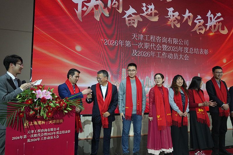 2026年2月5日,天津工程咨詢有限公司隆重召開2026年第一次職工代表大會(huì)暨2025年度總結(jié)表彰及2026年工作動(dòng)員大會(huì)。上海建科咨詢集團(tuán)、天津國(guó)興資本公司股東代表,公司董事會(huì)成員、老領(lǐng)導(dǎo)、領(lǐng)導(dǎo)班子成員、中層干部、職工代表及受表彰的先進(jìn)集體、個(gè)人現(xiàn)場(chǎng)參會(huì)。大會(huì)通過(guò)線上直播全體員工同步觀看大會(huì)盛況。